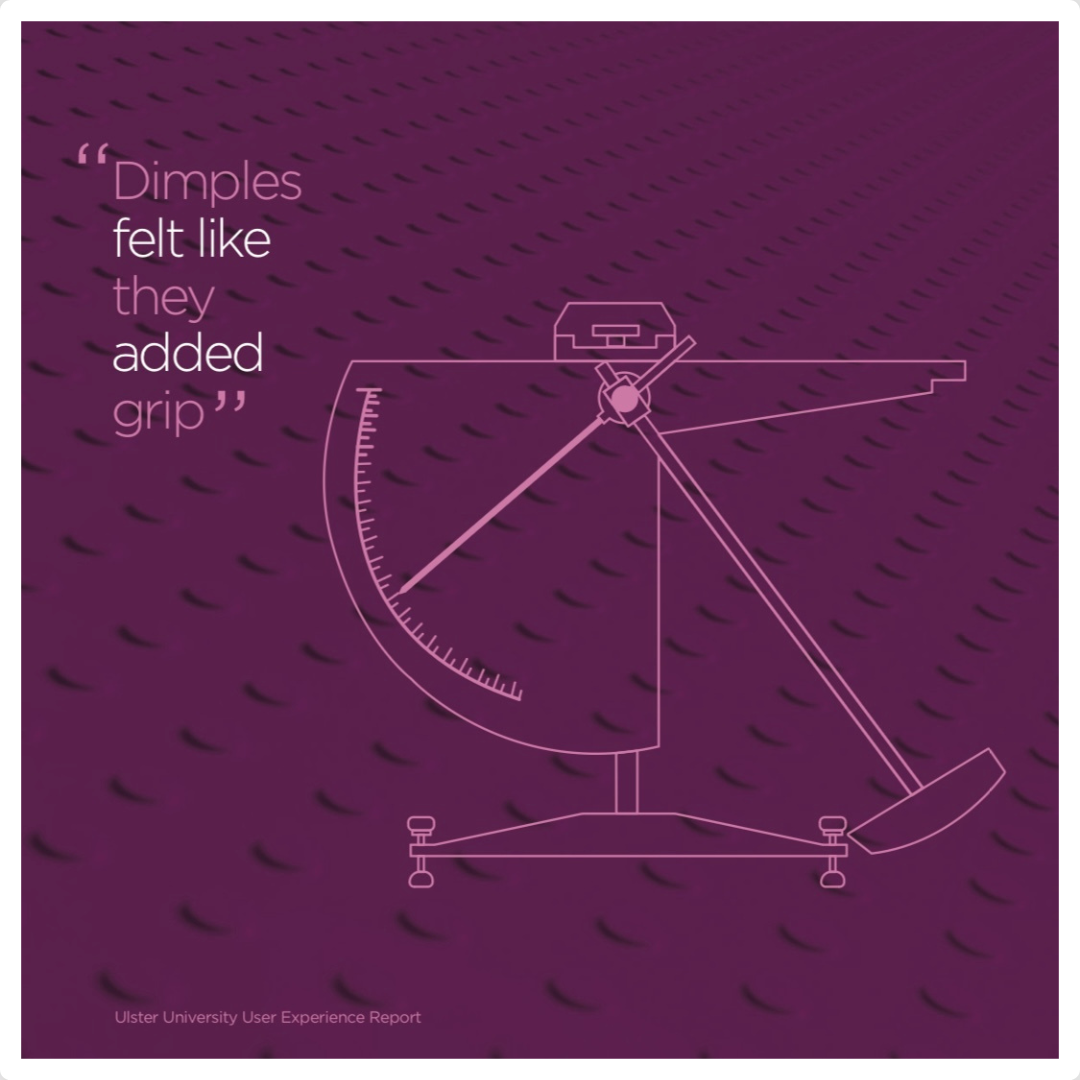 The calculated spacing between the dimples allows the soapy waste water to run free to the drain. With no edges, it offers nothing for dirt, grime, or hair to cling to. This dimple design, therefore, allows the pan to be effortlessly easy to clean. Cleanability is such an important and overlooked issue for anti-slip surfaces, as a dirty surface very quickly becomes a slippery one.